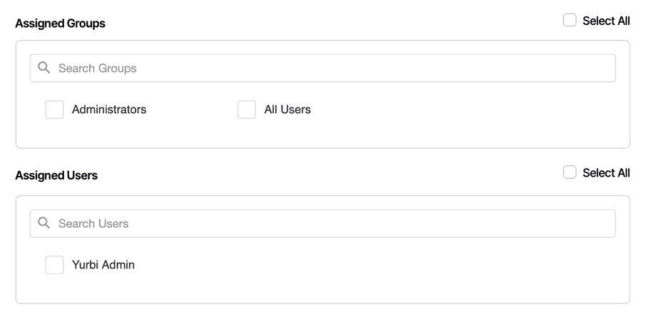 Assigning to Groups: All available groups appear as checkboxes. You can: