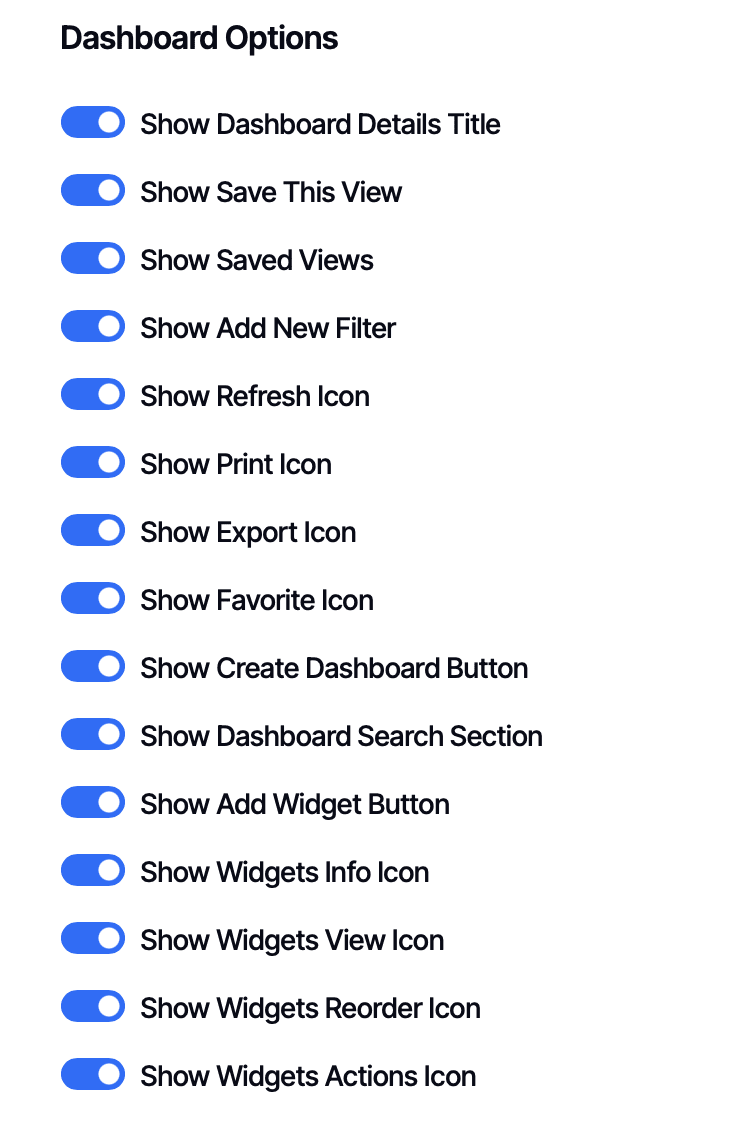 These settings control what features are available when users interact with dashboards. By default, all options are enabled.
