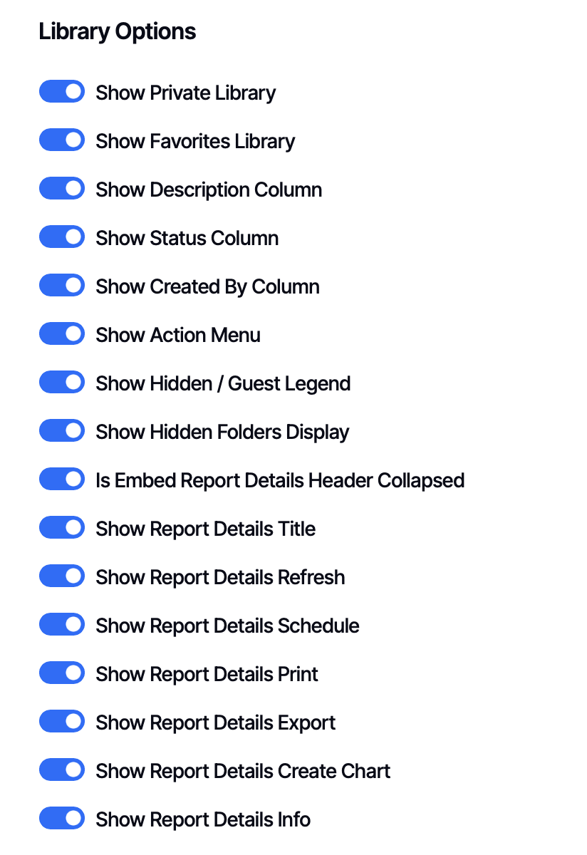 These control report features when embedded. See Embedded Report and Dashboard Branding for complete details.