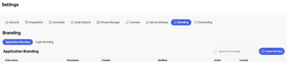 Navigate to Settings → Branding → Application Branding → Create Branding