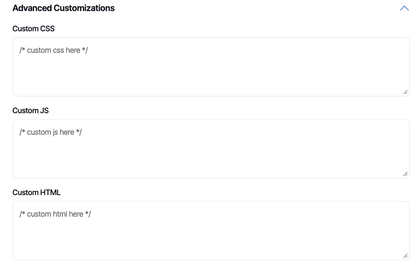 Custom CSS Add your own stylesheets to further customize the appearance. This is perfect for matching exact brand guidelines or making specific visual tweaks.