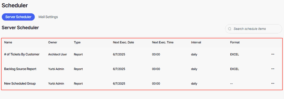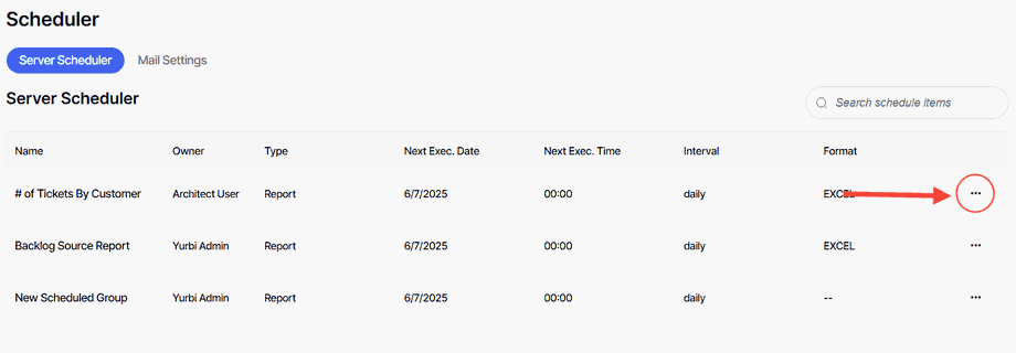 Admin users can view scheduled items from all users and assign a new owner to any scheduled item (excluding those they created themselves).
