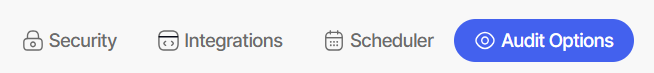 Audit Options allows you to manage which activities have their logs saved in the database and how long they are retained.
