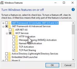 2. Click .NET Framework 4.6 Advanced Services > WCF Services and select the HTTP Activation check box.