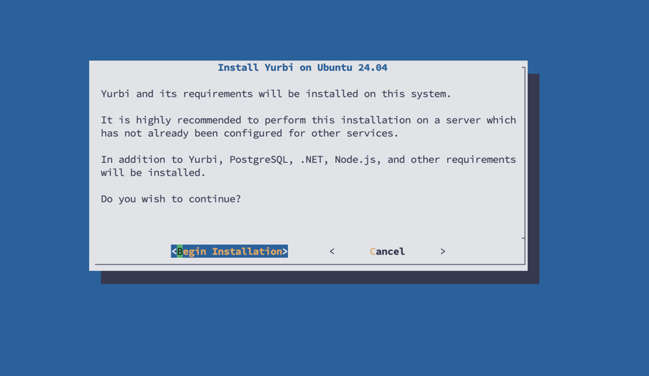 This command will download and run the Yurbi installation script. If you encounter an error indicating that your version is not supported, refer to the list of supported Linux versions above. For assistance with a specific distribution or version, please contact support@yurbi.com.
