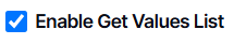 6. By default, Enable Get Values List is checked. As this is an add criteria with no prompt, having this checkbox ticked off will not affect the report you are building.