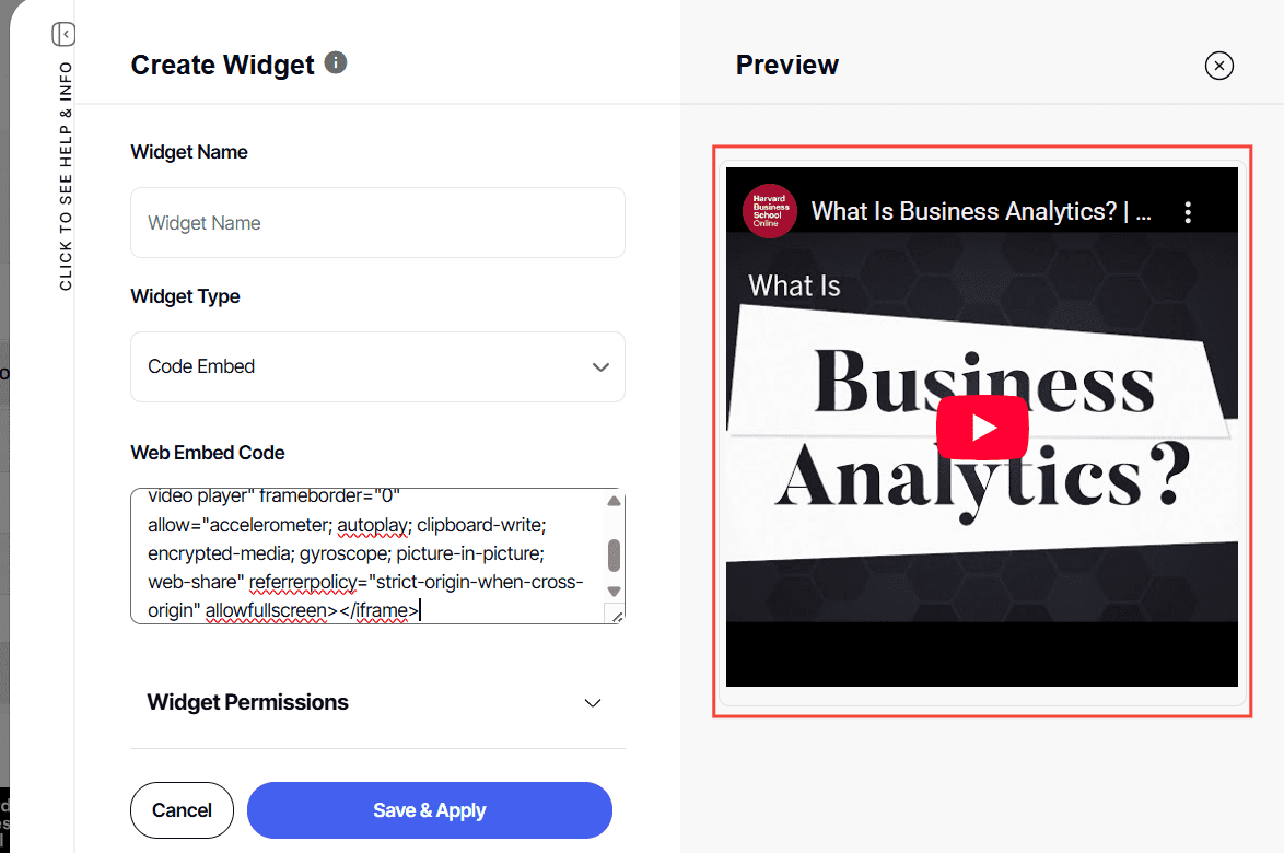A pop-up on the right-side will appear where you can configure the widget you want to add.