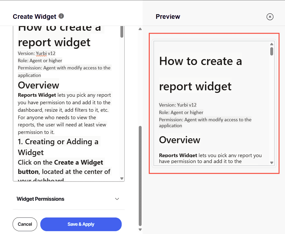 Under Widget Permissions, tick off the Hide Title in Widget to hide the widget name in the dashboard.