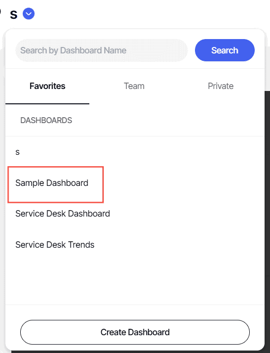 2. The dashboard menu will appear displaying your favorite dashboards with a Create Dashboard button at the bottom. Click on it to start crafting your unique dashboard.