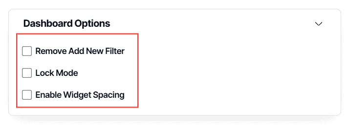 7. Under Dashboard Options, toggle them by ticking off the box: