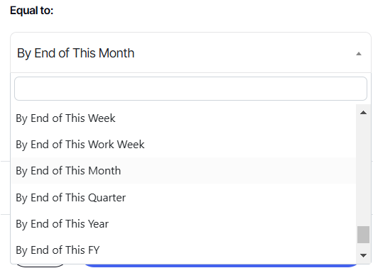 1. To get a calendar filter under EQUAL operator, either scroll down or search for Custom Values
