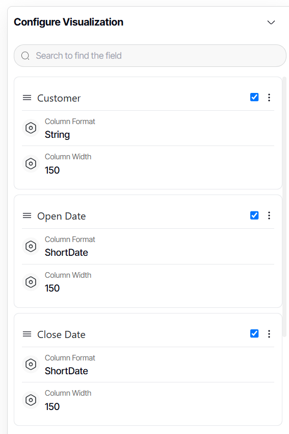 1. Under Configure Visualization, you can see the selected report field for the report you are building.