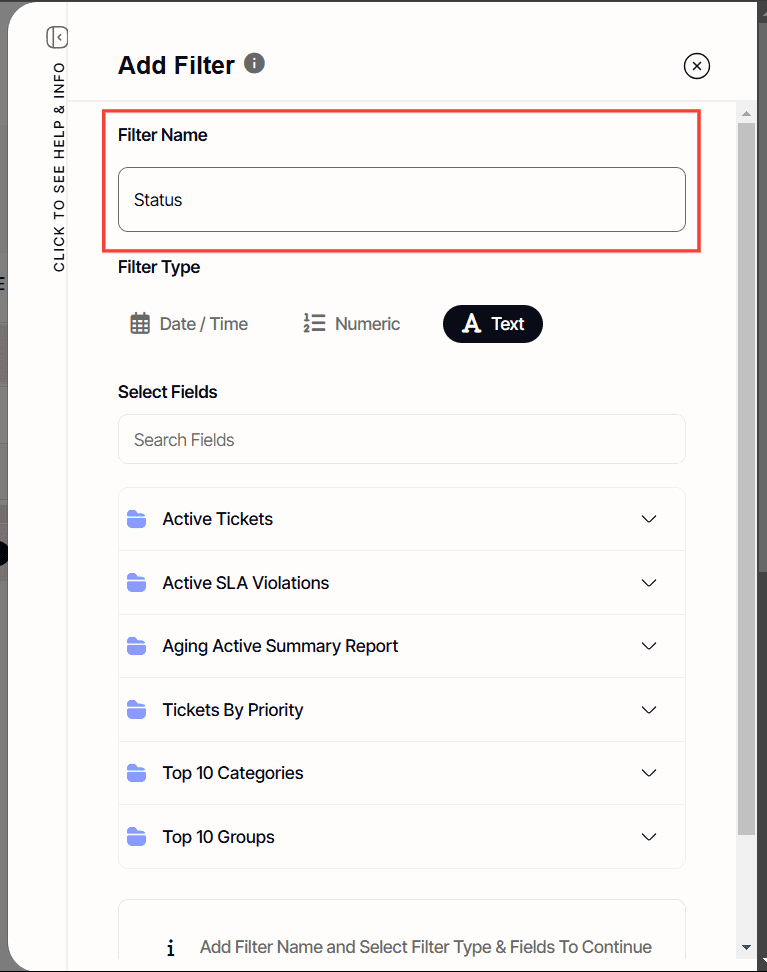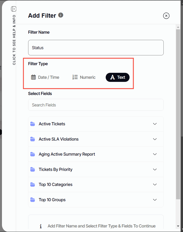 - Numeric – Allows you to use numbers to filter out data.
