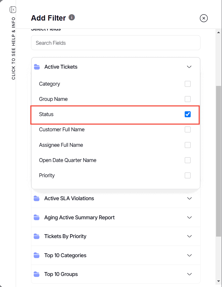 5. Check the field this filter should apply to. A single filter can only apply to 1 field per report.