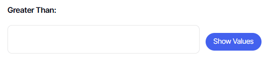 4. OR; To get a drop-down of values for an GREATER THAN operator, click Show Values