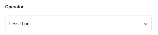 The steps are the same as GREATER THAN operator, but instead select LESS THAN in the operator drop-down menu