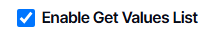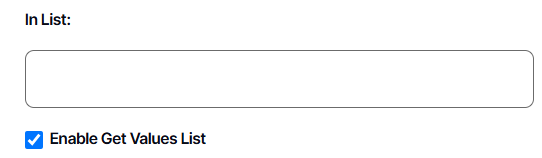 2. Under IN LIST operator, leave the box blank, and ensure that the Enable Get Values List is ticked.