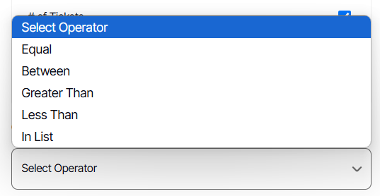 8. In a Numeric Filter Type, under Operator, you can choose among EQUAL, IN LIST, BETWEEN, GREATER THAN, or LESS THAN. Here is how they differ: