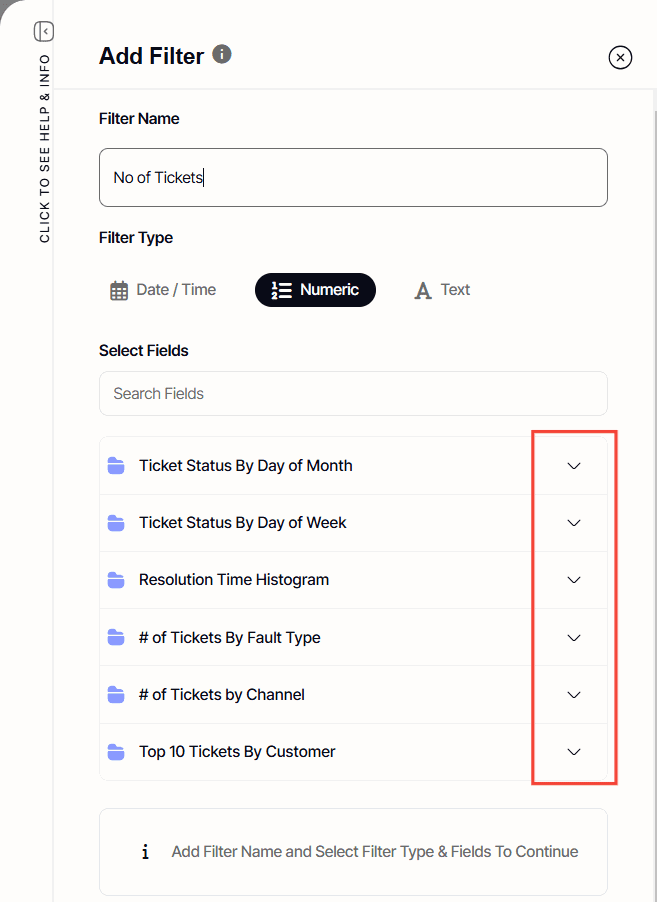 5. Check the field this filter should apply to. A single filter can only apply to 1 field per report.