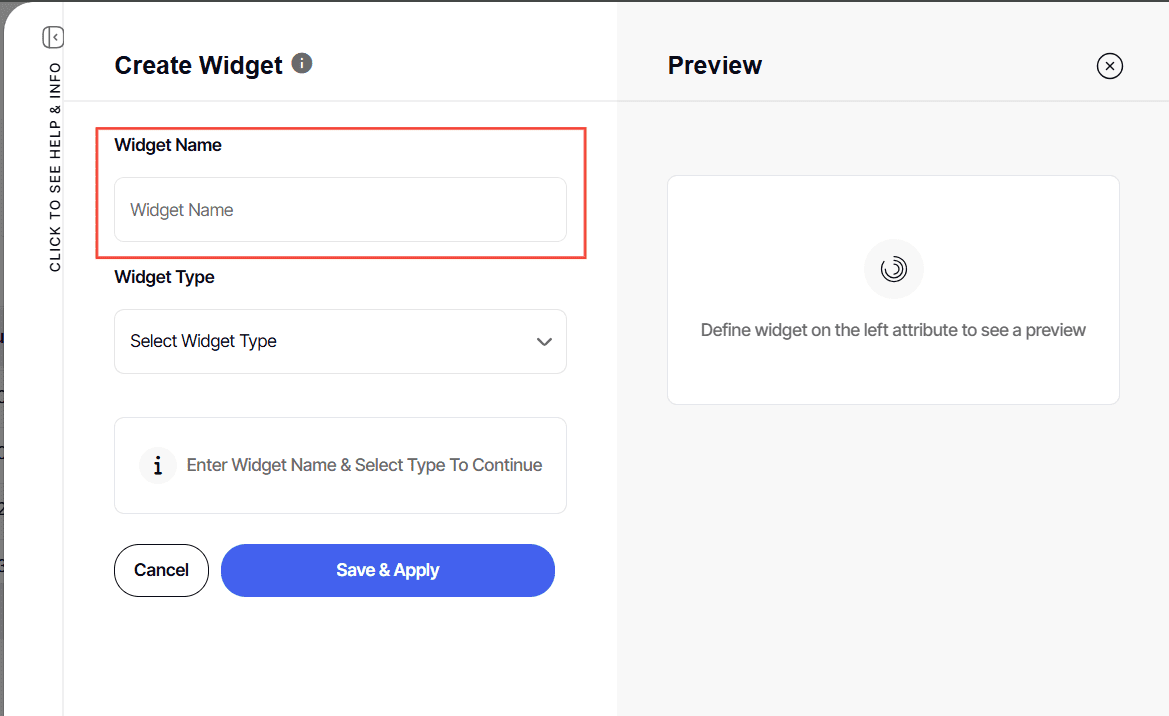 A pop-up on the right-side will appear where you can configure the widget you want to add.