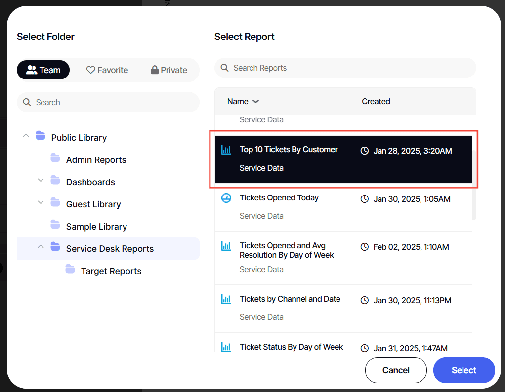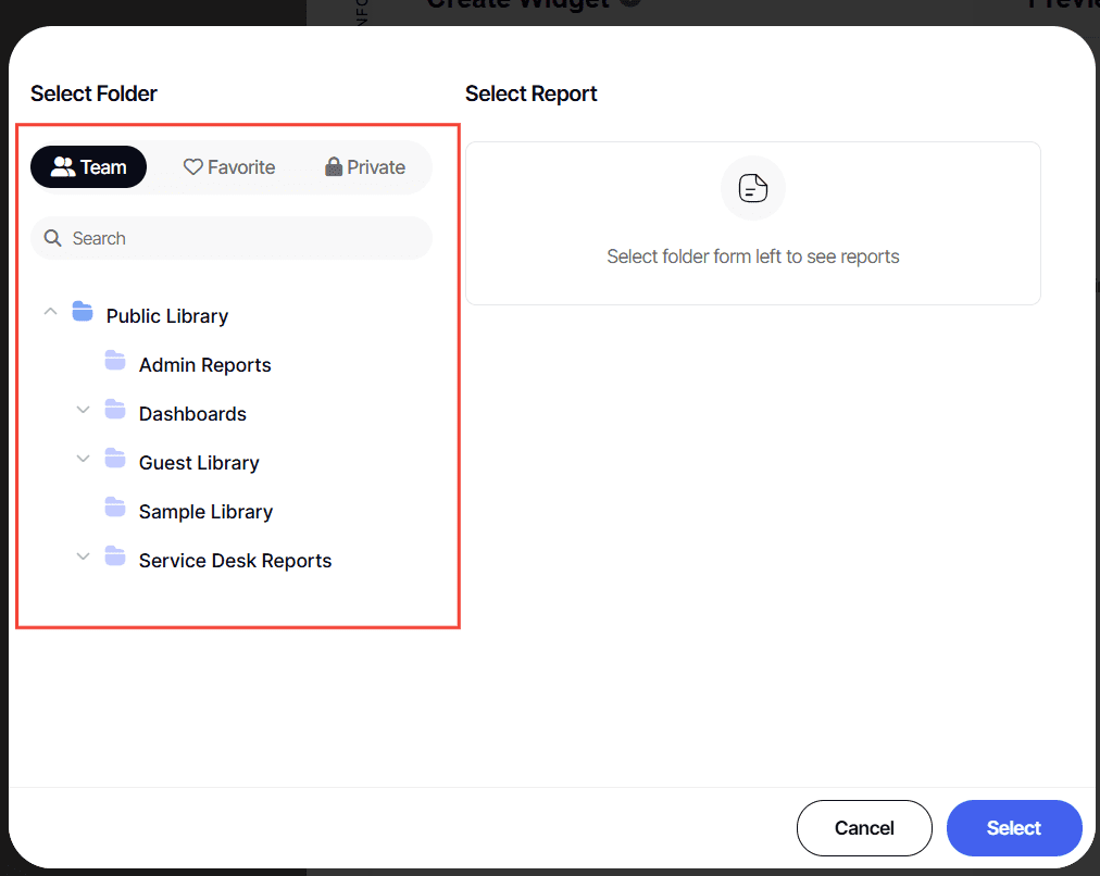 Click on the Add a Widget button, at the top-right corner of your dashboard.