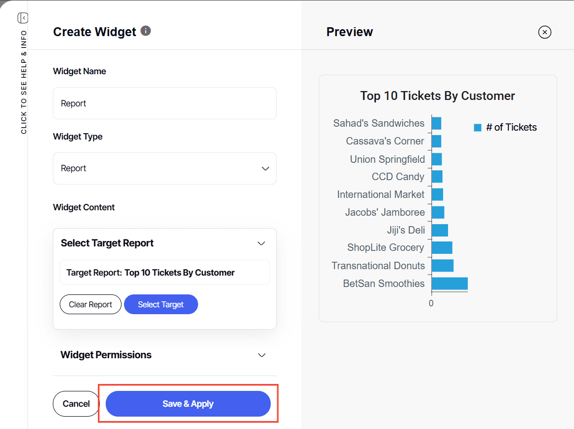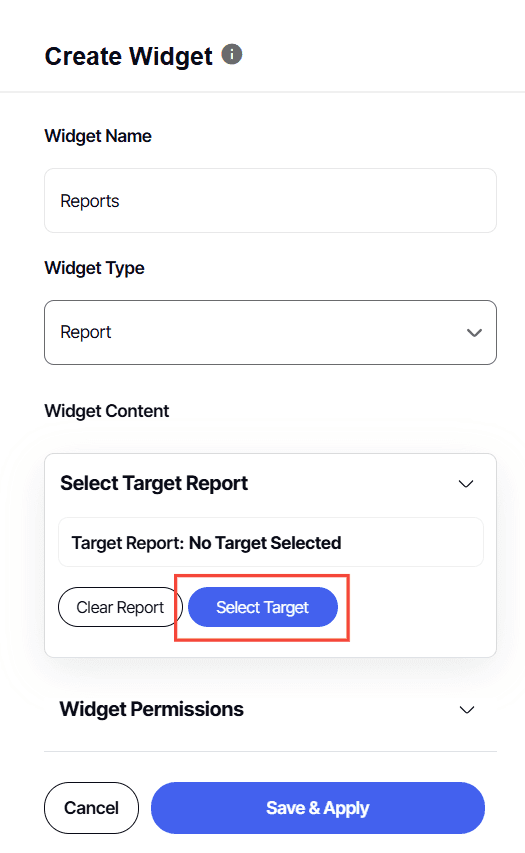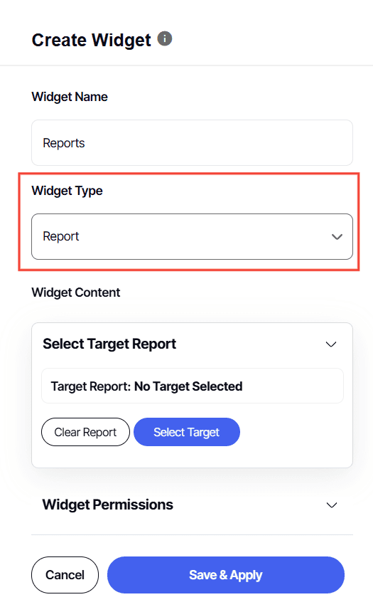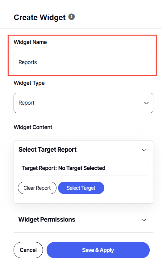Under Widget Permissions, tick off the Hide Title in Widget to hide the widget name in the dashboard.