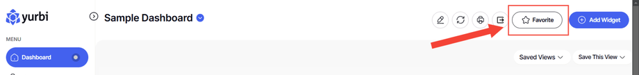 1. To mark a dashboard as a favorite, click on the Favorite button located at the upper right side of the dashboard main screen. It is represented by a star icon.
