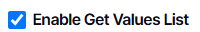 3. Tick off Enable Get Values List